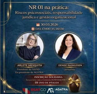 A advogada Arlete Mesquita, especialista em Direito do Trabalho e ex-conselheira federal da OAB por Goiás ex-presidente da Associação dos Advogados Trabalhistas (AGATRA), destaca que a NR-01 exige uma mudança concreta na forma como as organizações lidam com os riscos ocupacionais.