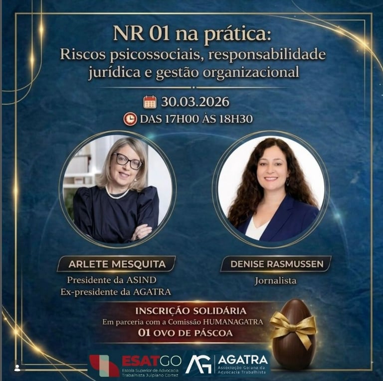 As recentes atualizações na Norma Regulamentadora nº 01 (NR-01) têm colocado um novo tema no centro das discussões jurídicas e corporativas: a gestão dos riscos psicossociais no ambiente de trabalho. Para aprofundar esse debate e orientar profissionais do Direito sobre os impactos práticos da norma, será realizado um evento voltado a advogados e operadores jurídicos, reunindo especialista nas áreas jurídica e organizacional.
